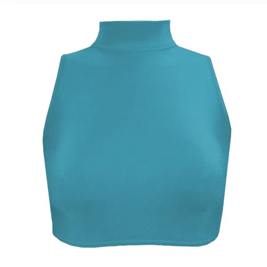 Sleeveless dance crop top with with a plain front, polo neck and keyhole back.