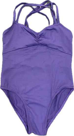 Camisole leotard with double cross straps, rouched front and bra lining.