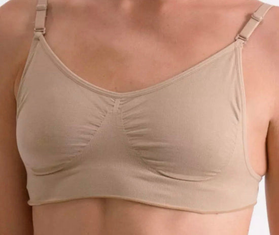 The Silky Dance seamless bra is every dancer’s essential item and has been designed with comfort and performance in mind. This nude dance bra has a no show appearance which provides full coverage whilst fitting seamlessly under stage costumes and leotards, including those with mesh panels providing extra coverage, support and confidence. This bra is seamless and comes with two sets of adjustable camisole straps, a nude set and a clear set. The back has a clear back strap (two are provided to give two back width options). The bras front has a double layer of fabric and an underbust band for added support.